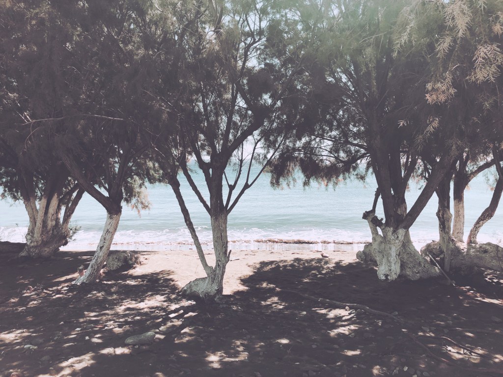 Αφού πήραμε το πρωινό μας στο ομώνυμο μαγαζί της παραλίας, φρέσκια ομελέτα, παραδοσιακό ψωμί με μέλι και φρέσκο χυμό, καθίσαμε σε ένα παγκάκι στην παραλία και ατενίσαμε το Αιγαίο!