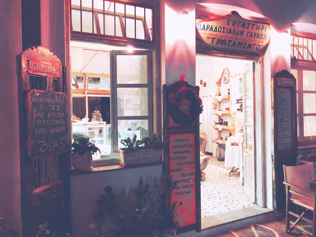 Η δεύτερη ανακάλυψη ήρθε περπατώντας στα καλντερίμια της Χώρας. Είχαμε περάσει καναδυό φορές έξω από αυτό το παραδοσιακό μαγαζάκι και είχαμε την ίδια αίσθηση… Μας μύριζε κάτι τόσο γλυκό και εύγευστο. Αφού βρήκαμε από που προέρχεται η θεσπέσια μυρωδιά, οδηγηθήκαμε μέσα στο Τραταμέντο, μαγαζί με χειροποίητα παραδοσιακά προϊόντα.