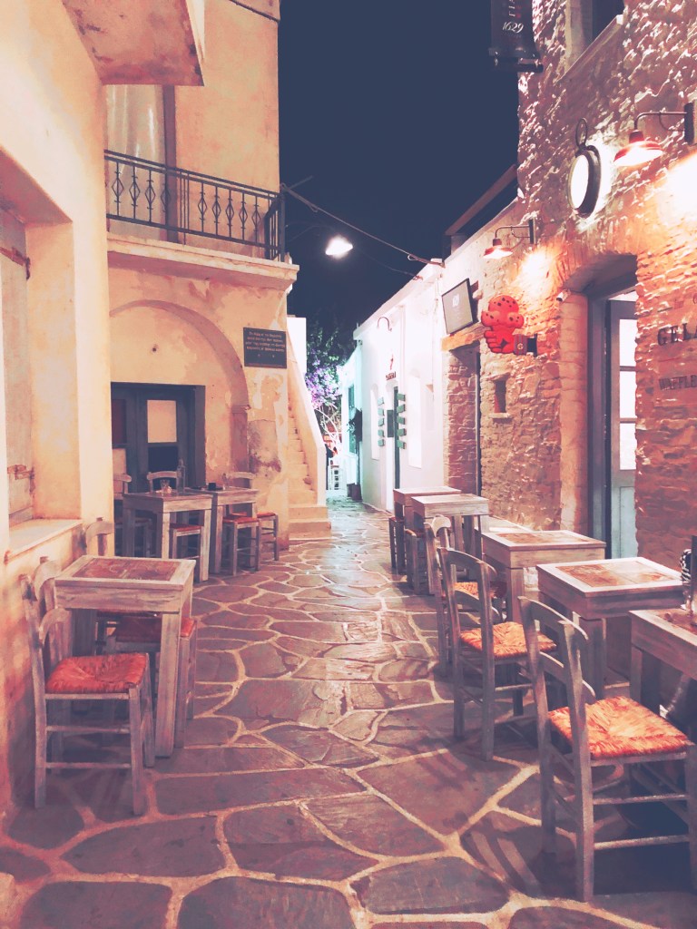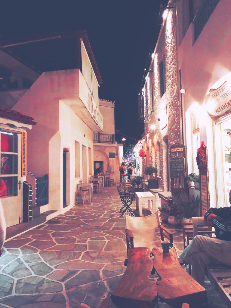 Αφού πήραμε ένα τσάι με μέλι από το νησί, οδεύσαμε προς τον οικισμό της Παναγιάς Κανάλας ή αλλιώς Κανάλα, όπου διαμείναμε. Η Κανάλα απέχει περίπου 19΄ από το λιμάνι του Μέριχα και 18’ από την Χώρα. Είναι ένας ήσυχος τουριστικός οικισμός και ενδείκνυται κυρίως για οικογένειες! Έχει σούπερ μάρκετ, φούρνο, παραδοσιακές ταβέρνες, καφετέριες στις οποίες μπορείτε να φάτε ένα ενδιαφέρον πρωινό και μια μεγάλη παραλία, την Μεγάλη Άμμο. Αφού βολευτήκαμε γρήγορα γρήγορα στο δωμάτιό μας, πήραμε τον δρόμο για την Χώρα του νησιού.