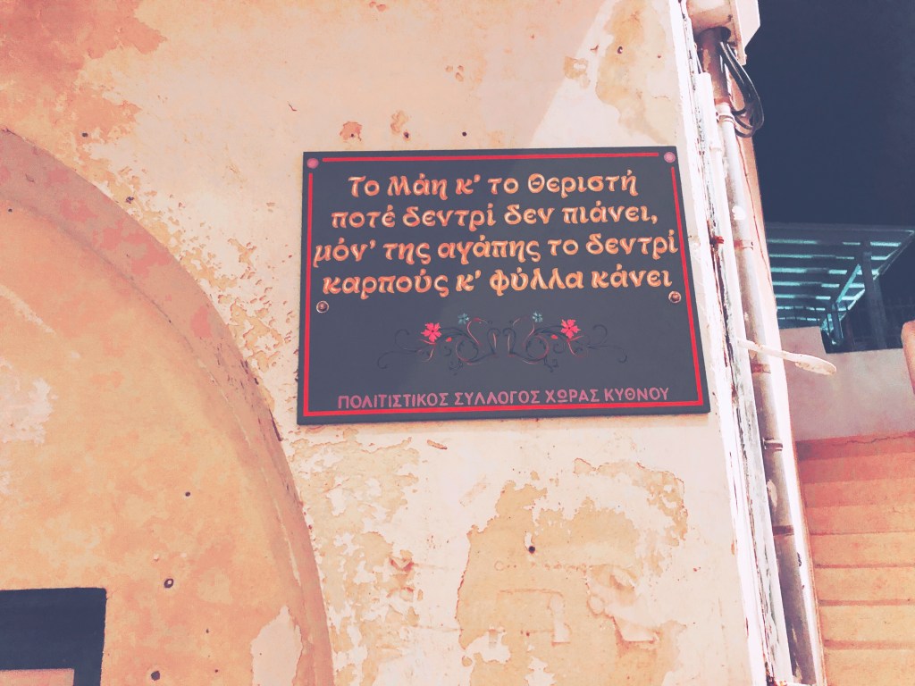 Περνώντας από το στενό αυτό πρώτα θα σκιρτήσουν τα ρουθούνια σου από την μυρωδιά της γουρνοπούλας και μετά τα μάτια σου και η καρδιά σου από τις αναμνήσεις που θα σου ξυπνήσουν οι εικόνες που θα δεις! Το μαγαζάκι αυτό είναι ουσιαστικά ένα παλιό σπίτι με αυλή!