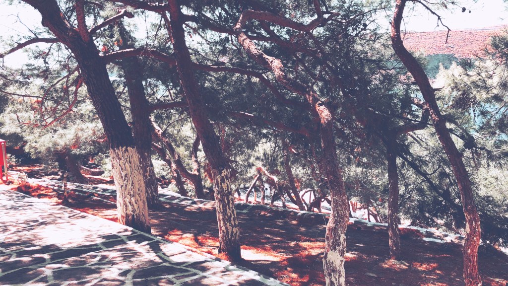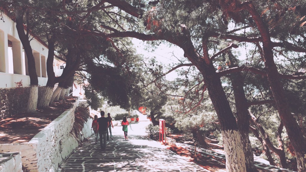 Ανυφορίζοτνας προς τα πάνω επισκεφθήκαμε το Προσκύνημα της Παναγιάς Κανάλας. Την εκκλησία θα την ανακαλύψεις μέσα στο μοναδικό πευκοδάσος του νησιού! Μια διαδρομή υπέροχη και ιδανική για τις θερμές μέρες, καθώς θα σε δροσίσουν τα πεύκα!