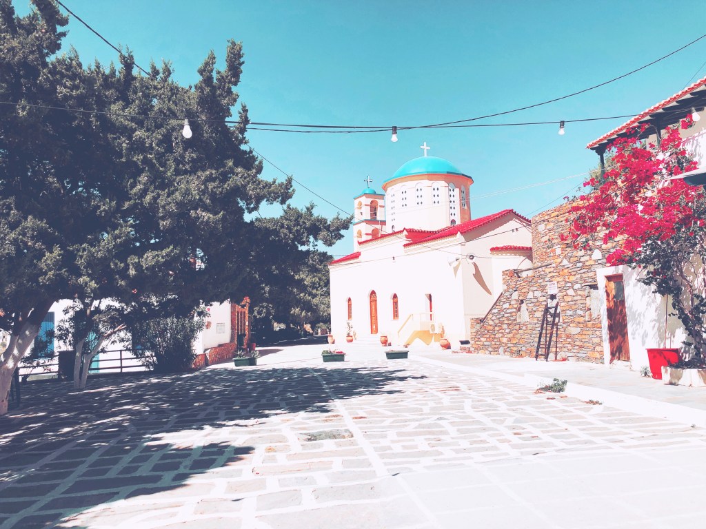 Ξαφνικά το δρομάκι θα σε βγάλει σε μια υπέροχη πλατεία που στην μέση της δεσπόζει η εκκλησία της Παναγιάς Κανάλας.